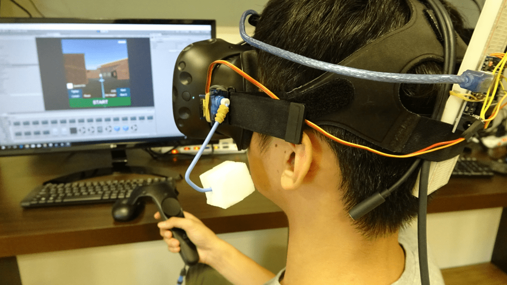 S. Liu, N. Yu, L. Chan, Y. Peng, W. Sun and M. Y. Chen, “PhantomLegs: Reducing Virtual Reality Sickness Using Head-Worn Haptic Devices,” 2019 IEEE Conference on Virtual Reality and 3D User Interfaces (VR), Osaka, Japan, 2019, pp. 817-826.